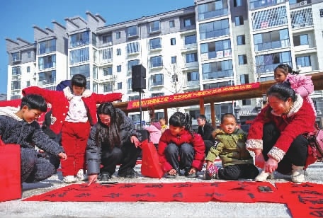 1月21日,书法家们为团洲新村的安置群众书写春联和“福”字。当天,“新年开气象 瑞福聚团洲”——2025年春节团洲乡“送万福、进万家”书法公益活动在华容县团洲乡团洲新村举行,书法爱好者们为安置群众免费写春联、送“福”字,营造欢乐祥和的节日气氛。