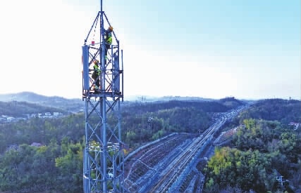 “天线俯仰角、倾斜角数值核对正确,与馈缆连接处的防水处理良好……”通信工肖亮说,他们既要在塔顶巡检设备,保障高铁运行秩序,还得克服铁塔摇摆晃动带来的恐慌感。