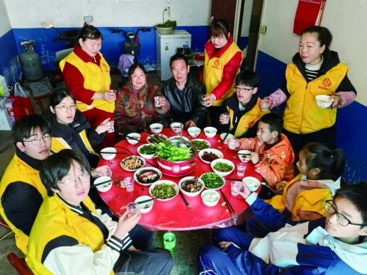 香喷喷的饭菜上桌,李爷爷和老伴坐在主位,志愿者们围着圆桌举起酒杯,送上新年祝福,随着相机的快门声响起,抓拍下暖意融融的“全家福”。看着一屋子忙碌的志愿者,李爷爷说,自己也想加入公益队伍,“像这些孩子们一样,力所能及地去帮助别人”。