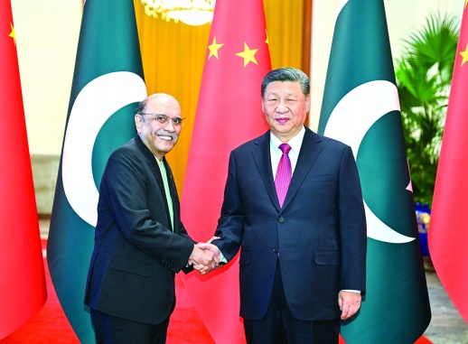 扎尔达里表示,巴基斯坦和中国是亲密邻邦,更是全天候的好朋友、好伙伴。巴中友谊历经风雨,两国人民的心始终紧紧相连。无论形势如何变化,巴方都将毫不动摇同中方站在一起。巴方感谢中方为巴经济社会发展提供无私帮助,愿学习中国成功经验,推动中巴经济走廊和各领域合作高质量发展,助力巴基斯坦实现工业化和现代化。在习近平主席英明指引下,中国在国际事务中发挥越来越大的引领作用,日益成为维护世界和平、稳定、繁荣的重要力量。巴方愿同中方密切配合,坚持多边主义,维护自由贸易,促进两国和广大发展中国家的共同利益。