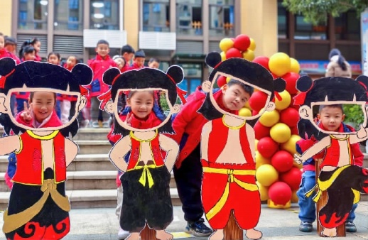 2月10日,长沙市中小学迎来开学第一天,各个学校举办了丰富多彩的迎新活动。长沙市天心区教育局幼幼和城幼儿园在开园活动中开展哪吒系列互动游戏,小朋友在“步步高升吒云霄”台阶区打卡迎新。向玉蕾 摄