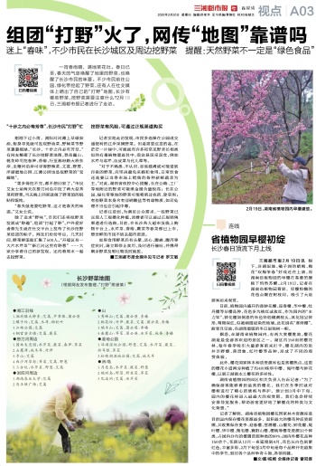 除了追求“野味”,市民们还将挖野菜发展成“野趣”,组团“打起了野”。户外爱好者蔡先生就在社交平台上发布了长沙挖野菜组团的帖子,网友们纷纷呼应,几天时间,野菜群里就汇集了500人。“开福区有一大片水芹菜”“靳江河这里有野葱”……大家分享着自己的新发现,还约着周末一起去挖野菜。