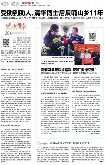 2月25日,接受三湘都市报记者采访时,杨明说起了自己从受助者成为助学者的故事。