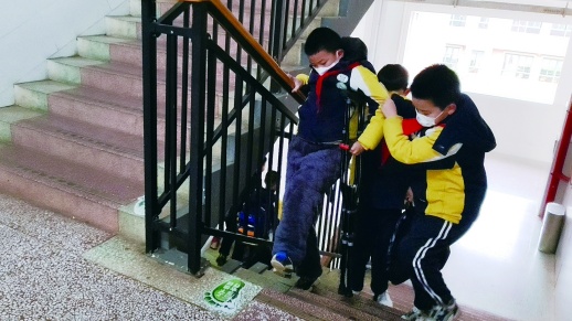 前几天,长沙市天心区实验小学2008班杨斌的左脚因意外受伤,行动不便。“伤了脚后,所有的活动对我来说都很困难。”因为要佩戴护具,左脚不能沾地,原本简单的校园生活对他来说变得困难重重。