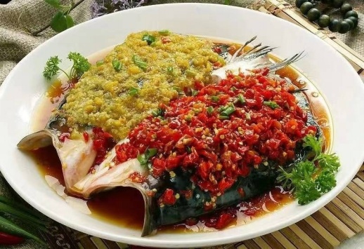 剁椒鱼头 传统做法:鱼头+大量剁椒+热油淋制,高钠高脂。