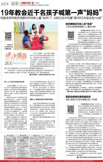 坚持始于2004年,当时刚毕业的毕晓芳在幼儿园实习,关注到一名总是躲在窗帘后转圈的孤独症孩子。正是这份特别的关注,毕晓芳开始了自己的“特殊教育之旅”,通过自学自考,2006年成为全国首批康复教师。2011年,在众多家长的建议下和自己的热爱坚持下,她创办了长沙开音儿童教育中心。从成为康复老师起,19年时间里,她帮助近千名孩子进入普幼普小,回归正常生活。