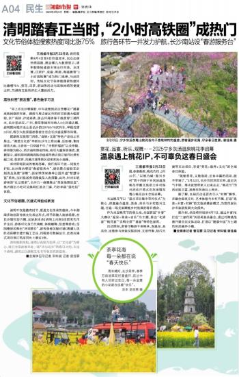 清明假期虽短,湖南以高铁为纽带,以“文化游”为核心,吸引全国游客共赴一场“诗与远方”的春日之约。在这个清明,湖南正以湖湘文化书写春日的新篇章。