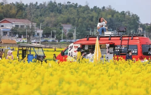 周末晴好,长沙茶亭,春季万亩油菜花烂漫盛开。花丛中有人恰好过生日,每一朵金黄的小花都在说着“快乐”。