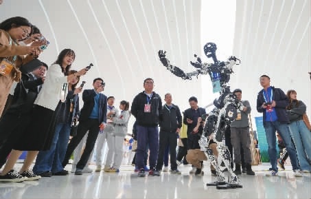 3月27日,主题为“新质生产力与全球科技合作”的2025中关村论坛年会在北京中关村国际创新中心举行。近百台机器人活跃在迎宾、交流、主持、表演、服务等场景,为与会嘉宾提供服务。新华社 图