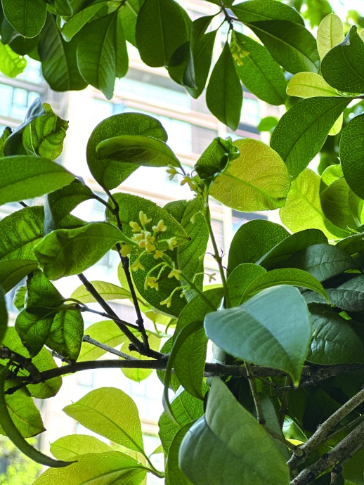 3月27日,长沙市民薛女士走在小区内能闻到阵阵桂花香气。她发现,竟然是桂花开了,不禁感慨,“8月桂花开怎么变成3月了”。