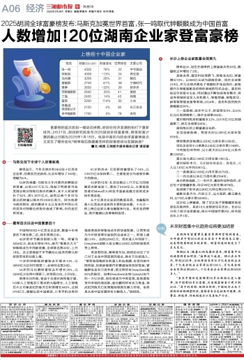 人数增加!20位湖南企业家登富豪榜