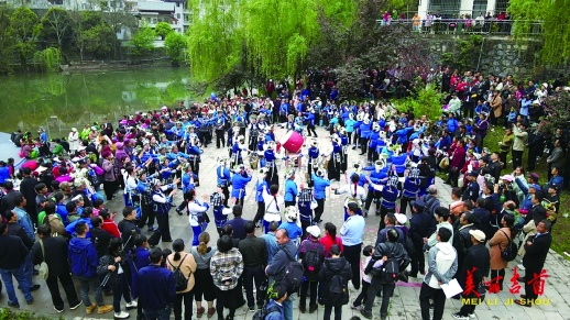 4月3日,清明前夕,丹青镇清明河畔热闹起来,当地居民正在准备清明歌会。