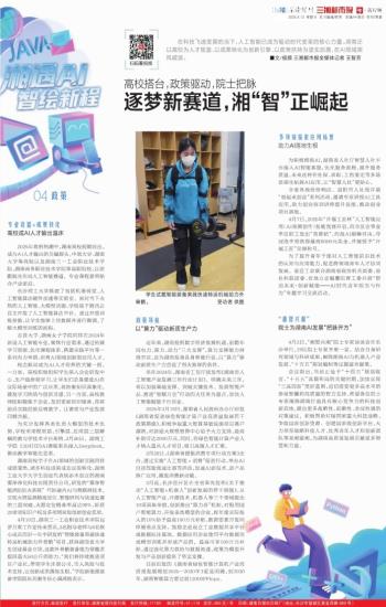 在科技飞速发展的当下,人工智能已成为驱动时代变革的核心力量。湖南正以高校为人才摇篮、以成果转化为创新引擎、以政策扶持为坚实后盾,在AI领域乘风破浪。■文/视频 三湘都市报全媒体记者 王智芳