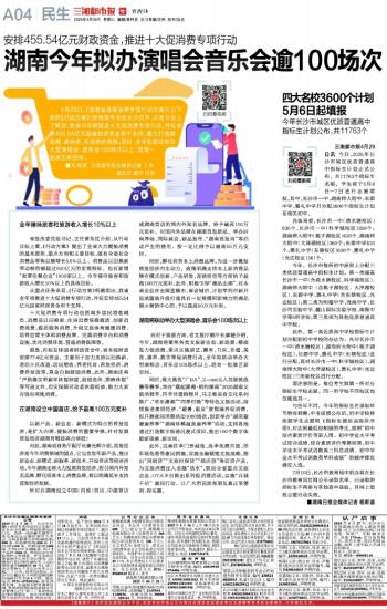 湖南将联动举办大型演唱会、音乐会100场次以上
