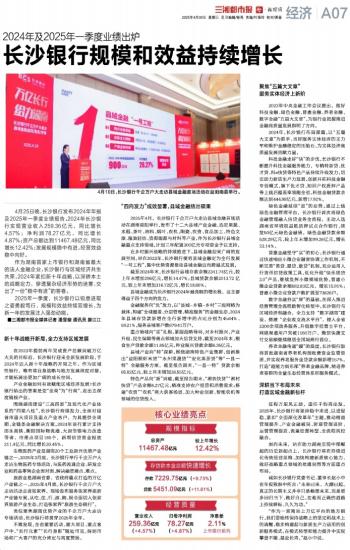 长沙银行规模和效益持续增长