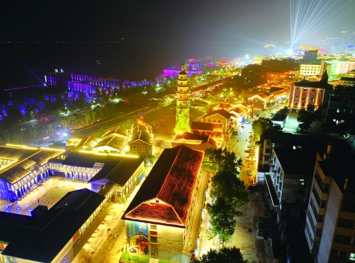 5月14日晚,岳阳市洞庭南路灯火次第点亮,将岳阳古城勾勒成一幅流动的工笔画。这条蜿蜒的历史长廊,珍存着1处国保单位(慈氏塔)、59栋历史建筑、30幢风貌建筑和13条古巷,飞檐斗栎间沉淀着最完整的城市记忆。