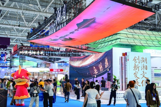 5月22日,观众在湖南馆参观。当天,第二十一届中国(深圳)国际文化产业博览交易会在深圳国际会展中心开幕。本届文博会,湖南馆以“湖湘文脉·科创未来”为主题,总面积1134,设立主形象区、“科文融合”综合展区、音视频产业专题展览,以湖湘文脉传承为核心,充分展示近年来湖南省在“文化和科技融合”领域的创新成果。