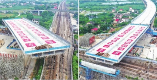 5月27日上午,经过85分钟紧张有序施工,由中铁二十五局承建的暮坪湘江特大桥跨京广铁路转体桥在空中精准“转身”84.9度,顺利完成转体对接。