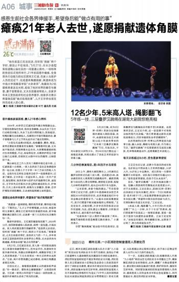 瘫痪21年老人去世,遂愿捐献遗体角膜