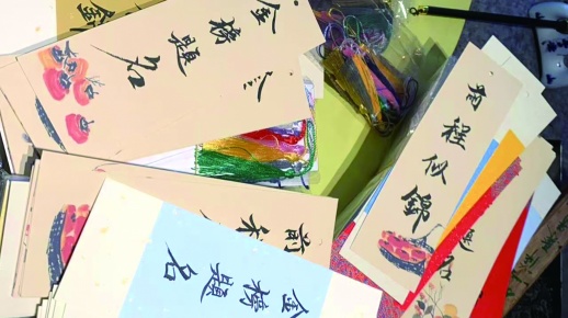徐丽莎向记者展示手中的书签,5年来,这个小小的公益活动已经有了完整的流程:从精选宣纸、设计样式,到书写祝福、装饰麦穗,每个环节都凝聚着志愿者们的心血。一开始,志愿者们担心字写得不好看,大家就反复练习。在她们眼中,每一张书签都承载着她们对学子们的期盼与祝福。