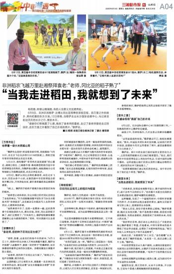 “我时常在思考,我们该怎么养活自己?”丰收的农场让穆萨看到了希望。在他看来,中国专家带来的技术降低了农业劳动强度,还增加了水稻种植的收益,“吸引年轻人从事农业生产将不再是难事”。