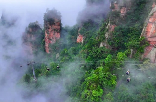 6月23日,游客在张家界国家森林公园天子山景区游玩。当天,受持续强降雨影响,临时关闭三天的张家界国家森林公园恢复对外开放,游客可通过分时分段预约的方式有序入园游览。景区内天子山索道、百龙天梯、黄石寨索道等交通工具同步投入运行。