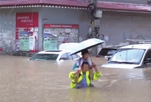 “小区旁边就是龙山县第三中学,当天恰好中考,学校大门口积水,现场的交警、派出所民辅警、社区工作人员都泡在水里,齐心协力转移居民、保障考生顺利进入考场。”贾胜波说,一开始用底盘较高的警车护送考生,后来发现考生太多,就由交警带着考生绕到该校另一处地势较高的校门,确保考生安全、顺利参加考试。