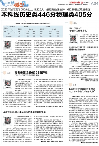 三湘都市报6月24日讯 6月24日,2025年全省高考工作第二次新闻发布会召开。记者从会上获悉,根据高考工作日程安排,6月24日公布分数线和分数后,6月26日起开始填报志愿。