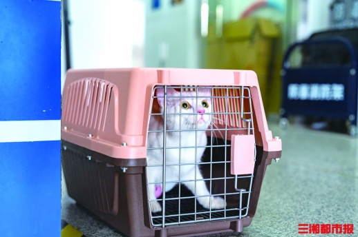6月25日,长沙南站迎来首只高铁“宠物旅客”。白色田园猫“爬爬”搭乘G1372次列车前往杭州东站。