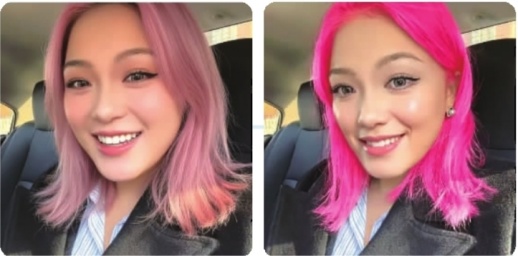 记者在LMArena平台上传了一张自己的照片,并下达指令,将发色变粉色,表情变为开心的露齿微笑。Nano Banana生成的图片背景保持清晰,并且原图人物头发上的光影细节得到保留,生成的发色更加自然,人物的表情面部细节还原度较高。