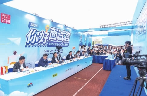 2025年“智汇潇湘 才聚湖南”大型招聘会现场,“你好,面试官”特色展区被围得水泄不通的,这里成为了整个招聘会上最具人气的“擂台”。每一分钟就有一人完成初面,节奏快得让人喘不过气来。