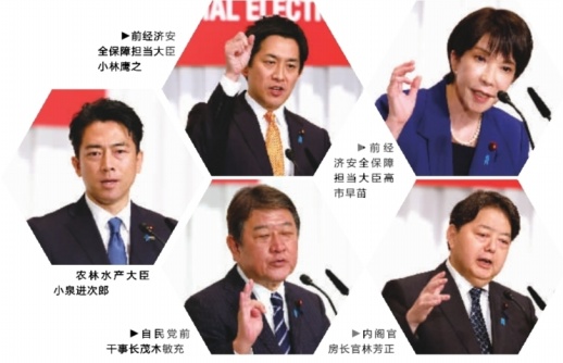 上述5名候选人均参加了去年9月的自民党总裁选举。当时,高市早苗在第一轮投票中总票数排名第一,但在第二轮中败给石破茂;首轮总票数方面,小泉进次郎、林芳正、小林鹰之、茂木敏充分列三至六位。