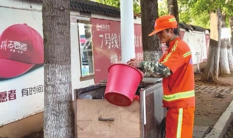 秋风扫落叶,也扫过他忙碌的身影。他脚步不停,动作麻利,时而弯腰捡拾垃圾,时而推着垃圾桶快步向前。直到记者念起网友们“平凡人的闪光点同样耀眼”“真正地为人民服务”等留言,他才终于露出笑容:“我高兴,谢谢大家。”