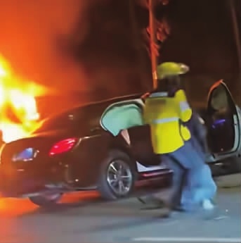 “我一把拉开主驾车门,浓烟呛得喉咙疼。当时心里就一个念头,赶紧把人救出来!”邓亚群俯下身,手指慌乱地摸着安全带卡扣,解开后便拽住昏迷的司机,用尽全身力气往外拖。刚把人拖到离车两米多远的地方,驾驶室瞬间被大火吞没,烈焰把黑夜映得通红。“前后也就一两分钟的事儿,要是再晚一点,后果不堪设想。”邓亚群感慨道。