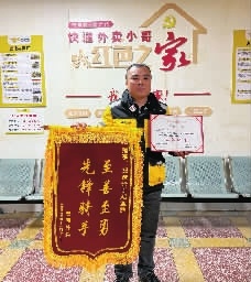 11月17日11时,邵阳市邵东市永兴站快递外卖小哥红色之家里格外热闹,47岁的外卖骑手邓亚群站在屋子中间,当红彤彤的荣誉证书递到他手里时,掌声响成一片。