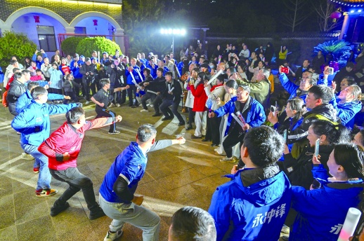 1月8日晚,永州市东安县聚德生态文化园,来自江苏的球迷与永州球迷在体验东安武术。当天,苏超·湘超球迷交流活动走进永州市东安县,与本地球迷齐聚一堂,体验当地深厚的传统文化与民俗风情,实现“以赛促融、以文会友”的深层次交流。湖南日报全媒体记者 郭立亮 通讯员 蔡小平 摄影报道