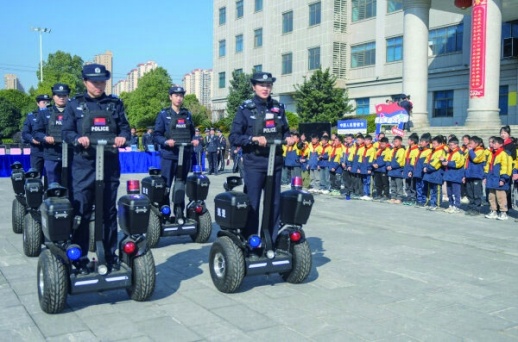 活动现场设置警用装备展示区,现场不仅静态展示新款电动鹰眼铁骑,还配备了交警铁骑队员讲解车辆性能、巡逻优势及在快速处置交通事故、疏导交通拥堵、查处交通违法等工作中的实战应用。