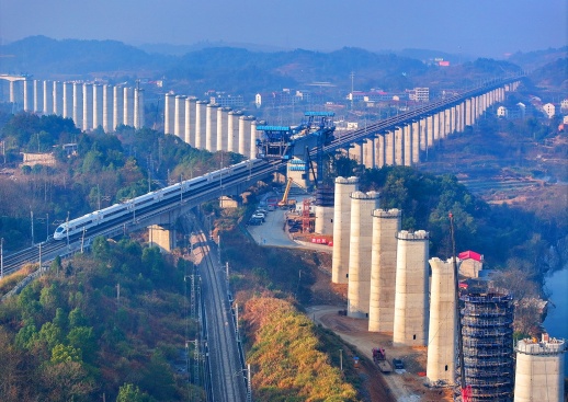 1月14日,工人在邵永高铁跨沪昆高速特大桥上施工作业。目前,由中铁四局承建的邵(阳)永(州)高铁跨沪昆高速特大桥转体桥梁工程进入上部结构施工的关键阶段,该桥为邵永铁路重点控制性工程之一。
