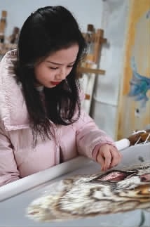 作为少有的画绣俱佳的技术能手,她熟练掌握了湘绣花鸟、动物、人物等各类针法技艺,尤其专攻动物题材创作,成为青年非遗代表性传承人里面的标杆。她与团队创造的“雪籽针”与“打籽针”,还被收入湘绣针法库。