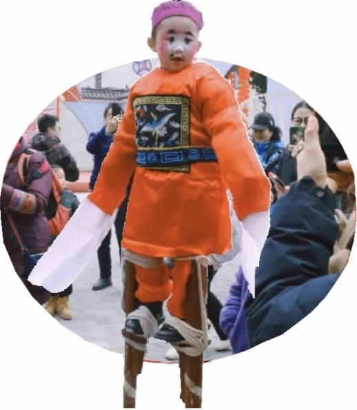 上午10时,长乐镇人流如织。古镇的青石板路上,一个小小的身影,梳着利落的发髻,身着绣着祥云纹样的红色官服,脚下踩着1米多高的木质高跷,迈着灵动的步子穿梭在人群中。