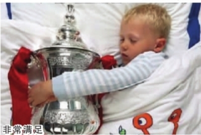 非常满足 Finley是一个在伦敦的小朋友,也是切尔西的铁杆球迷。一天,他写信给切尔西俱乐部说:好想抱着冠军杯睡觉。而切尔西让他实现了这个愿望! 切尔西俱乐部官员表示:他们还会给更多英国小朋友这样的机会,激励英国足球下一代人…… |
