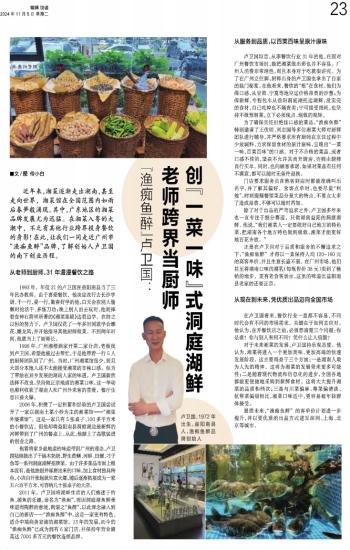 近年来,湘菜逐渐走出湖南、走向世界,湘菜馆在全国范围内如雨后春笋般涌现。其中,广东地区的湘菜品牌发展尤为迅猛。在湘菜入粤的大潮中,不乏有其他行业跨界投身餐饮的身影!在此,让我们一同走近广州市“渔痴鱼醉”品牌,了解创始人卢卫国的南下创业历程。