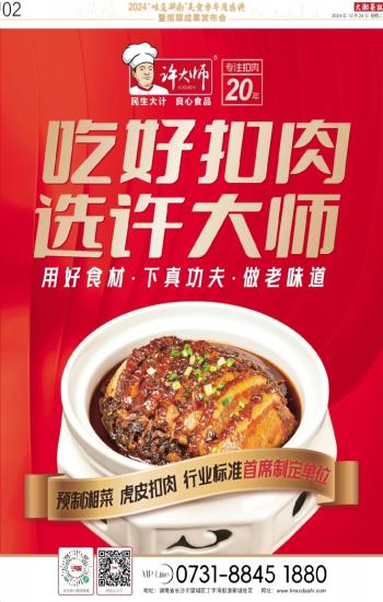 出版物号:CN43-0066 邮发代号:41-119《大湘菜报》全年208元/份(每周一出版)