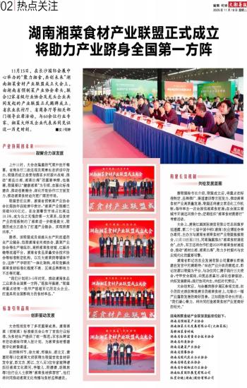 湖南湘菜食材产业联盟正式成立 将助力产业跻身全国第一方阵