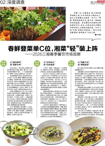 惊蛰一过,万物复苏。泥土里的春笋拱破土层,江河中的鱼儿溯流而上,枝头上的香椿吐出嫩芽。对于以“鲜辣”著称的湘菜而言,春天是一场极致的味觉盛宴,更是餐饮行业推陈出新的黄金节点。近日,记者走访长沙餐饮市场并深入上游供应链发现,长沙人的“吃春”热潮已然萌动,一场从田间到餐桌的“春鲜接力”正在上演。