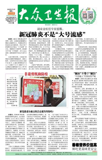 湖南省疾控专家提醒:新冠肺炎不是“大号流感”