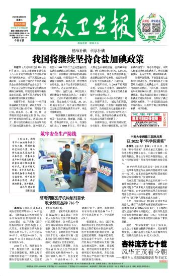 我国将继续坚持食盐加碘政策
