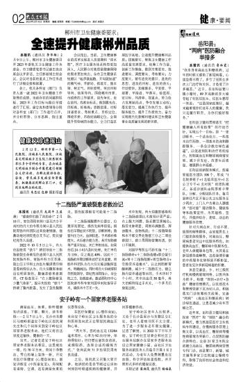 郴州市卫生健康委要求:全速提升健康郴州品质