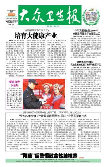 湖南省政府办公厅发文:培育大健康产业