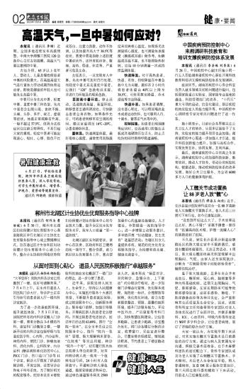 本报讯( 通讯员 李珊)近期,全国多地连续发布高温预警。中南大学湘雅三医院120急救中心主任左钰提醒,高温天气要注意预防中暑。